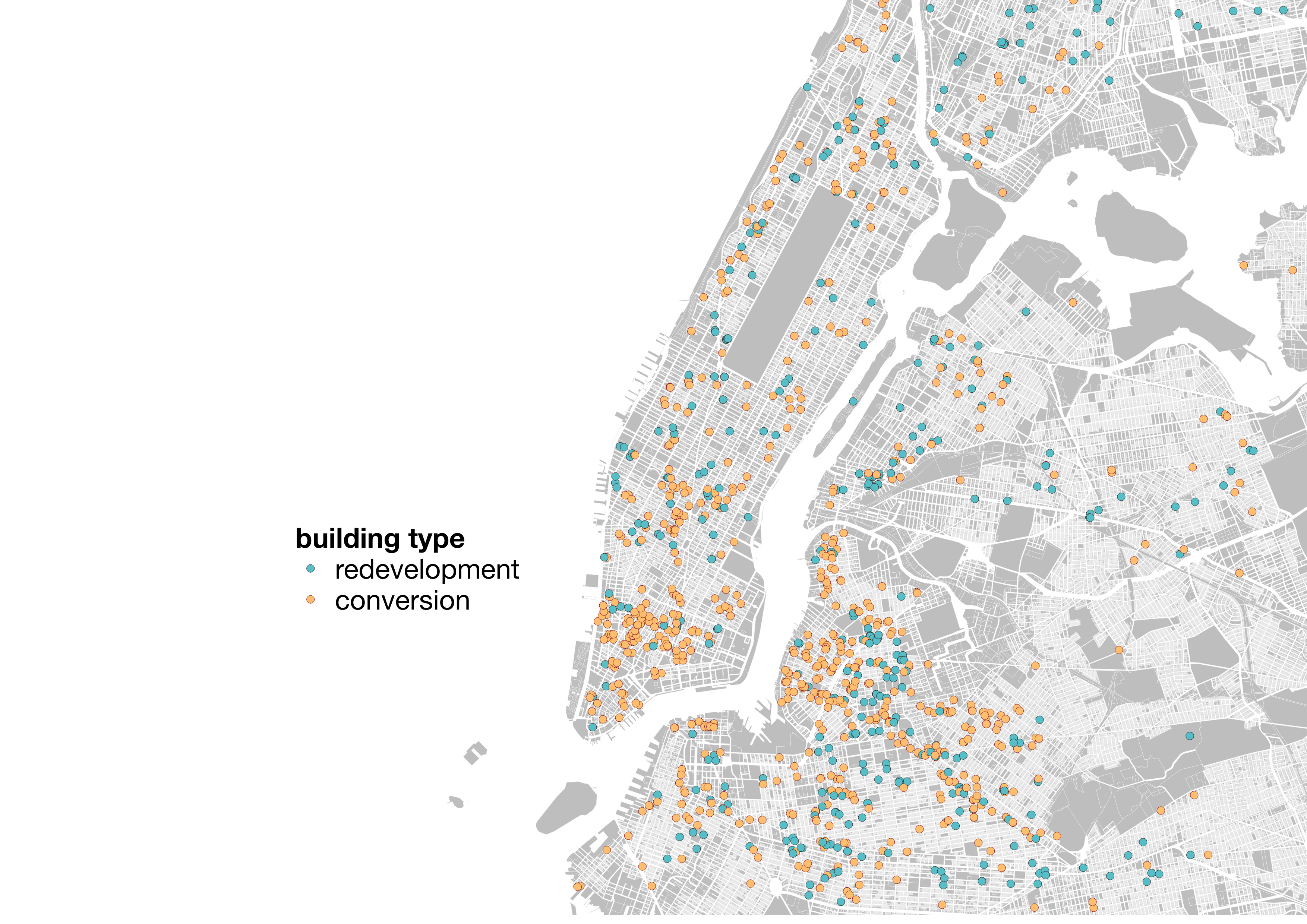Concerns over rising office vacancy rates and falling office building property values in many urban areas have increased the pressure on cities and developers to consider converting underused office space to residential use. To aid in current and future conversations surrounding the feasibility of conversion, we look to the recent past. In doing so, we provide an account of conversion and redevelopment activity in New York City over the past decade to uncover associated structural and locational characteristics. We find that office-to-residential conversions contributed the greatest share of residential rental units of all non-residential conversions from 2010 to 2020, with nearly 5900 units created. However, there is suggestive evidence that more recent obsolete office buildings generate significantly fewer units as compared to office conversions of the 1990s. We additionally model the probability of conversion and redevelopment. We find that hotels have the highest conversion probability, followed by loft, retail, industrial, and office. In general, relatively taller, narrower, older buildings with diminished value are more likely to be converted.